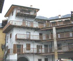 Pavimento poggioli formato da tavole di larice con spessore di mm 33; - parapetto tipo "Trento" in larice massiccio formato da montanti di sostegno con sezione di 70x70; - traversa parapiede e traversa parapetto con sezione di mm 70x45; - colonnine verticali con sezione di mm 33x 33 fissate alle due traverse; - corrimano con sezione di mm 90x45 incassato nella traversa parapetto; - mordenzato noce scuro in immersione.