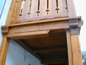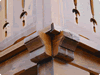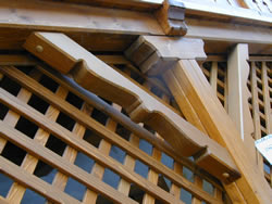 Particolare travatura di supporto orizzontale con estremità lavorate.