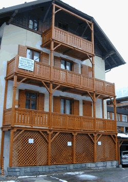Poggioli formati da; - montanti di sostegno e travatura di sostegno in abete bilama con spessore di mm 130x130 con angoli ad incastro e teste lavorate; - pavimento ad incastro, in larice con spessore di mm 40; - supporti diagonali in abete con spessore di mm 90x90, lavorati; - tavole verticali lavorate di mm 25x180 inserite in un telaio di abete di mm 90x90; - corrimanodi mm 130x50 in abete; - grigliati in abete;