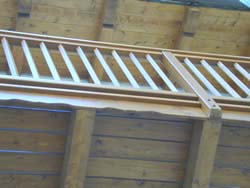 Particolare del pavimento poggiolo con mantovana coprimodioni lavorata e del parapetto.