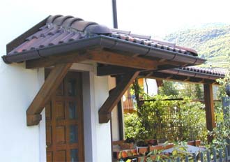 intelaiatura portante in abete lamellare di mm 120x160 e mm 100x120; - perline in abete con spessore di mm 20 con guaina di protezione; - copertura in tegole;-