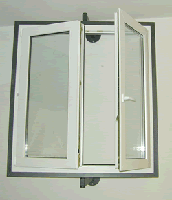 Serramento esterno in PVC colore Bianco RAL 9016 non plastificato, modificato con additivi polimerici, antiurtizzanti ed esenti da cariche minerali ed organiche 'DIN 7748', realizzati con profili KBE dotati di marchio RAL e ISO 9001 'SISTEMA GUARNIZIONI IN BATTUTA", completi di: - telaio fisso con spessore mm 58 e larghezza mm 71; - anta arretrata con spessore mm 58 e larghezza mm 82; - vetrocamera isolante di mm 24 (4/16/4); - fermavetri a scatto; - guarnizione di tenuta in battuta sul telaio e sull'anta, in EPDM colore nero; - ferramenta regolabile Maico di portata e di chiusura; - ferramenta per apertura DK (anta ribalta); - asta e leva con chiusura contemporanea di catenacciolo inferiore e superiore (per h > cm 90); - catenacciolo inferiore (per h < cm 90); - martellina colore bianco; - copertura in PVC delle cerniere angolari; - rinforzi in acciaio trafilato;