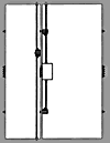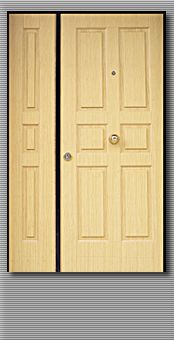 scocca in doppia lamiera pressopiegata di spessore 10/10 interna ed esterna opportunamente sagomata con rinforzi in acciaio spessore 15/10 che garantiscono allo scatolato una grande tenuta alla torsione e allo sfondamento. Isolazione interna con lana minerale spessore 60 mm a fibre lunghe parallele continue. Chiusura con sistema a compasso a scomparsa nel bordo frontale; asta di bloccaggio superiore nella traversa telaio con regolatore di chiusura e asta inferiore a pavimento con boccola a corredo. Bordi di finitura in acciaio verniciati Ral 8019 sui quattro lati a copertura e tenuta dei pannelli di rivestimento.