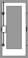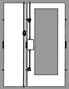 scocca in doppia lamiera pressopiegata di spessore 15/10 verso l'esterno e 10/10 per l'interno con intelaiatura interna in robusti rinforzi verticali ed orrizzontali in lamiera sagomata di spessore 15/10 a formare le battute della vetratura e l'irrigidimento della scocca stessa.Fermavetro in acciaio direttamente fissati all'intelaiatura. La lamiera interna ed esterna, unitamente ai rinforzi, è saldata in maniera tale da ottenere uno scatolato a sandwich con eccezzionali caratteristiche di rigidità torsionale e di tenuta allo sfondamento e scasso. Isolazione interna con lana minerale spessore 60 mm a fibre lunghe parallele continue. Bordi di finitura in acciaio verniciati Ral 8019 sui quattro lati a copertura e tenuta dei pannelli di rivestimento.